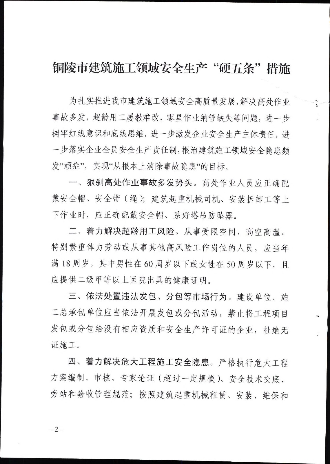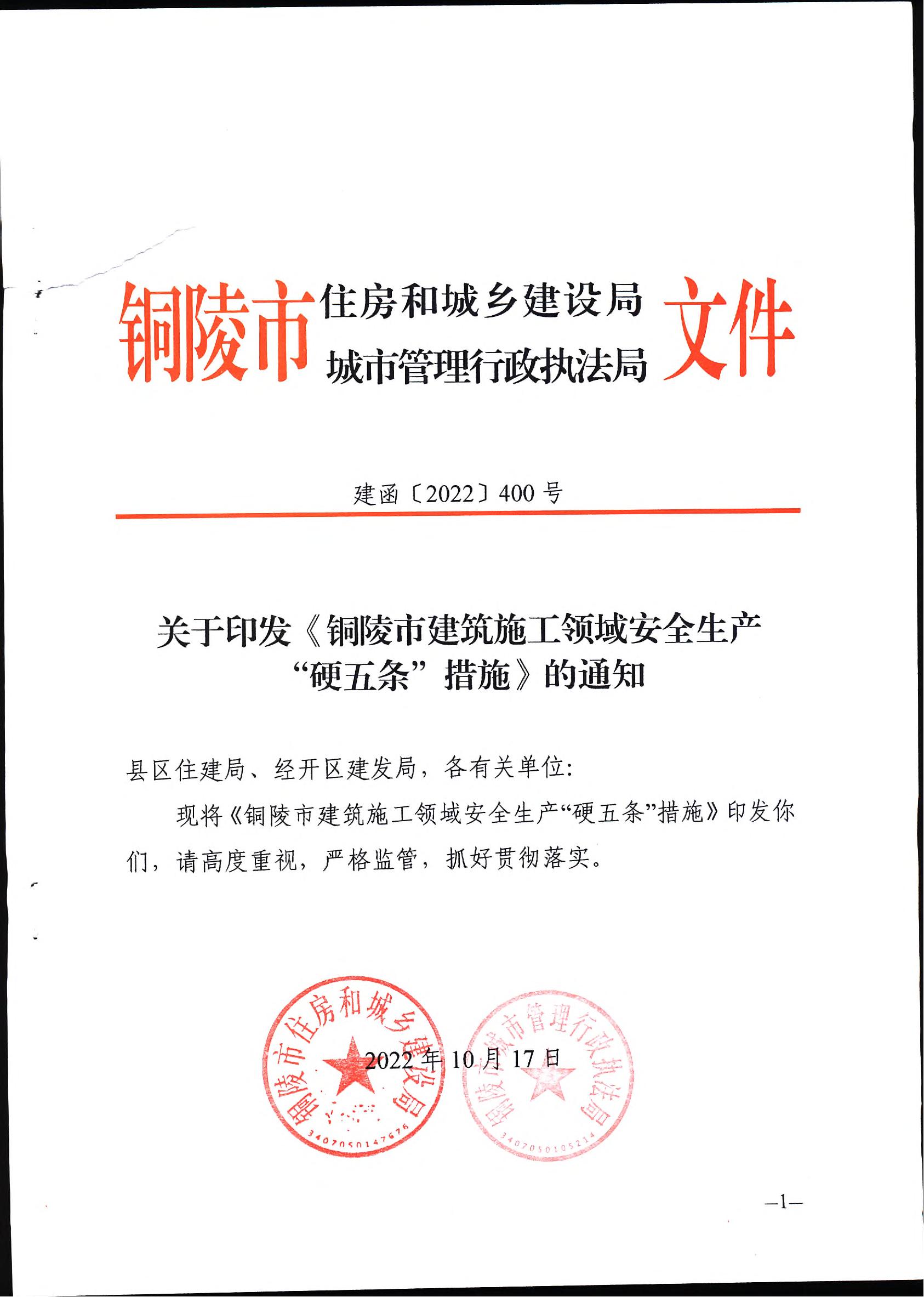 關(guān)于印發(fā)《銅陵市建筑施工領(lǐng)域安全生產(chǎn)“硬五條”措施》的通知